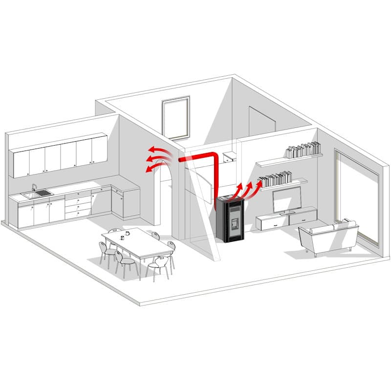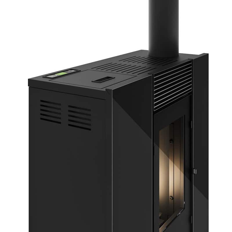 De Denise is een nieuw model pelletkachel van 10kW die beschikt over kanalisatie en kan daardoor een extra vertrek verwarmen.