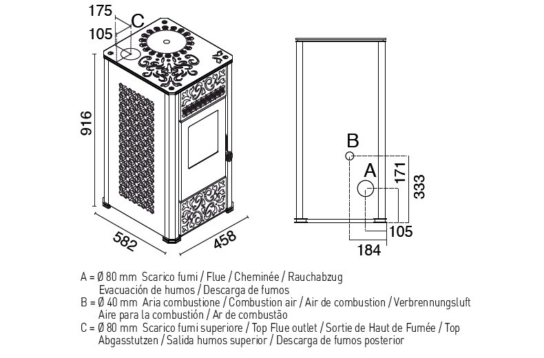 • Pellet verbruik 0,6 kg tot 1,8 kg per uur