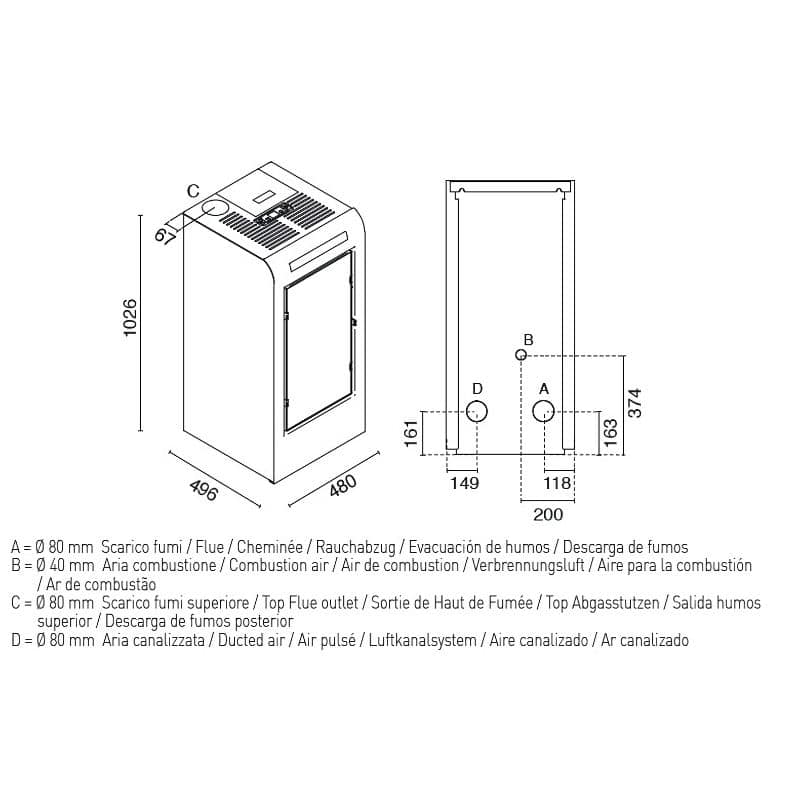 De Eva Calor Rosa is een pelletkachel met kanalisatie voor verwarming van een extra ruimte/vertrek.